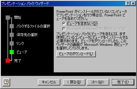 PowerPoint 2003 Viewerのほうが高機能ですが、Windows95、98、NTで使用できません。 |